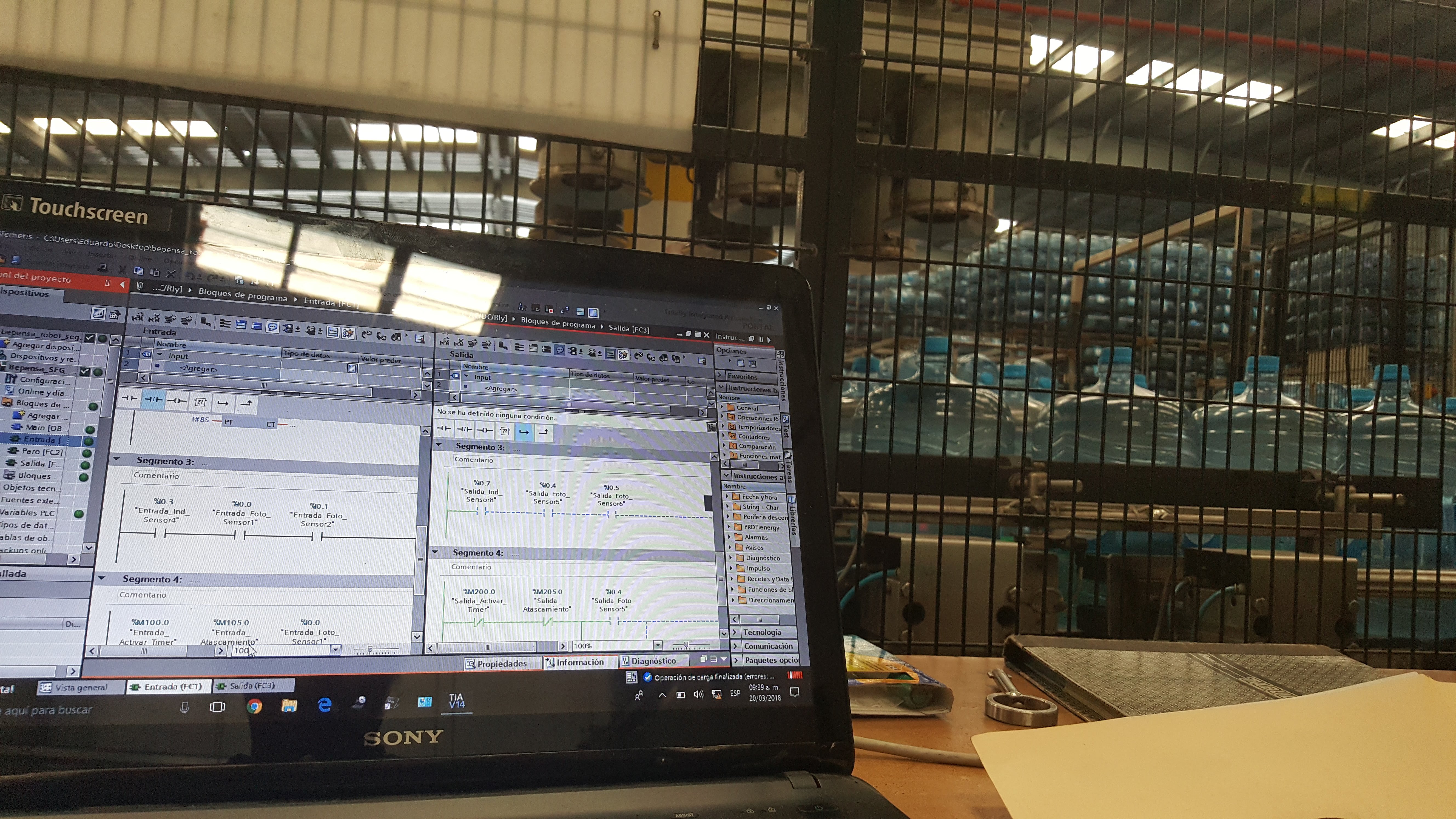 Los ingenieros de la empresa bepensa preocupados por la seguridad de su gente, requieren recuperar el sistema de seguridad perimetral para su sistema de estibamiento ya que dejo de laborar, nuestra participacion fue en la implementacion del sistema de control perimetral sin afectar, editar o modificar su sistema de control del brazo robotico.
